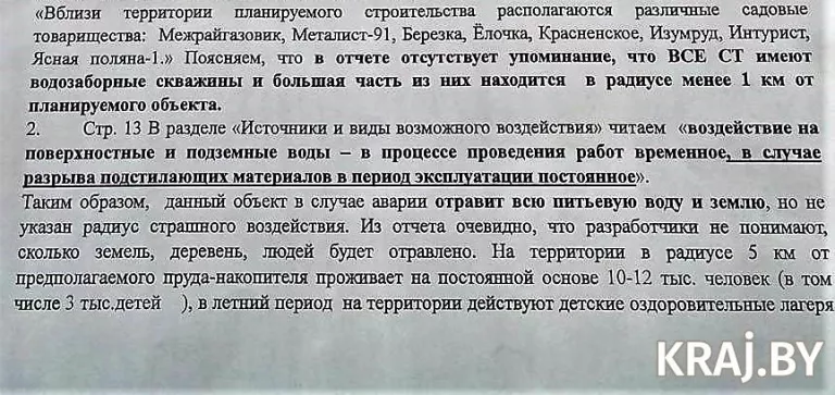Но по карте можно определить, что ближайшие водозаборы садоводческих товариществ расположены на расстоянии около 800 метров. Жители Чисти даже составили документ, доказывающий, что исследования проведены некорректно. (выдержку из документа прилагаем)