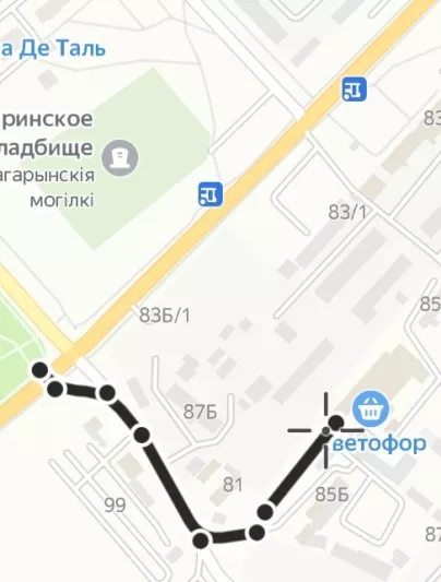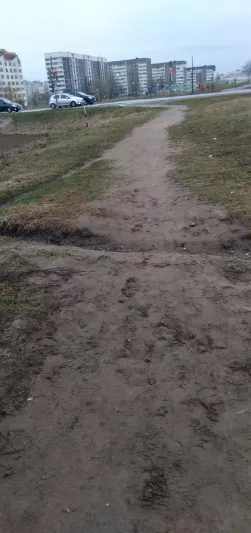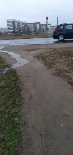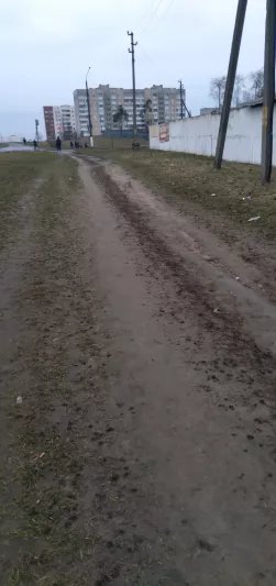 В последнее время в г. Мозырь по улице Гагарина появляется все больше различных объектов инфраструктуры. Однако добираться до некоторых из них пешком крайне неудобно. Речь идёт о дороге ведущей от перекрестка (бул. Малинина и ул. Гагарина) до следуюйщих объектов: супермаркета "Светофор", магазина велосипедов "твой велик", фитнес центра и автошколы. Всё объекты расположены в одном месте и это единственная дорога ведущая к ним из города (скриншот карты прилагается). Проблемы для пешеходов начинаются сразу после пересечения пешеходного перехода. Данный переход ведёт не на тротуар или оборудованную обочину из щебня. Он ведёт просто в грязь. Далее до самого супермаркета дорога для пешеходов не оборудована вовсе. Тротуара не существует, оборудованной обочины нет. Есть протоптанная тропинка вдоль дороги, которая после дождя превращается в грязную непроходимую лужу. К тому же весь участок пути вместе с пешеходным переходом никак не освещен в темное время суток. Ямы, грязь и неровности дороги попросту не видно. Также пешеходы плохо видны водителям транспортных средств, что представляет повышенную опасность для последних. В таком состоянии дорога является небезопасной, и не соответствует установленным требованиям.