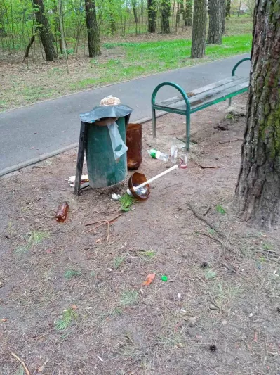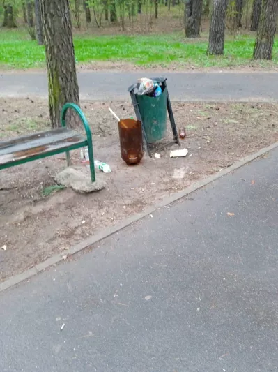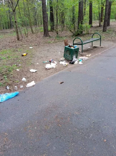 В парке есть установленные урны, но вывоз мусора производится реже чем того требует наполняемость урн. Именно переполненность урн и контейнеров создает не комфортную атмосферу для прогулок семей и гостей парка.