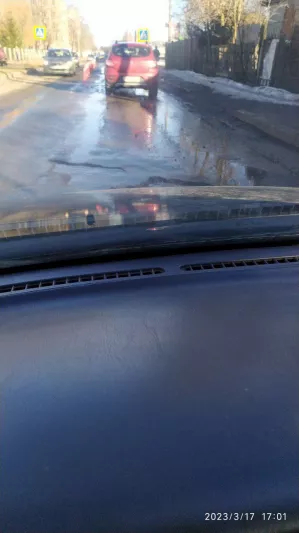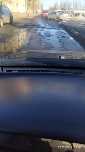 - вся дорога покрыта выбоинами (приложены файлы «Фото 1.jpg» и «Фото 2.jpg», как следствие, на протяжении всей улицы можно наблюдать в случае дождя большое количество луж, а перемещаться на автомобиле по такой дороге возможно только на самой минимальной скорости.