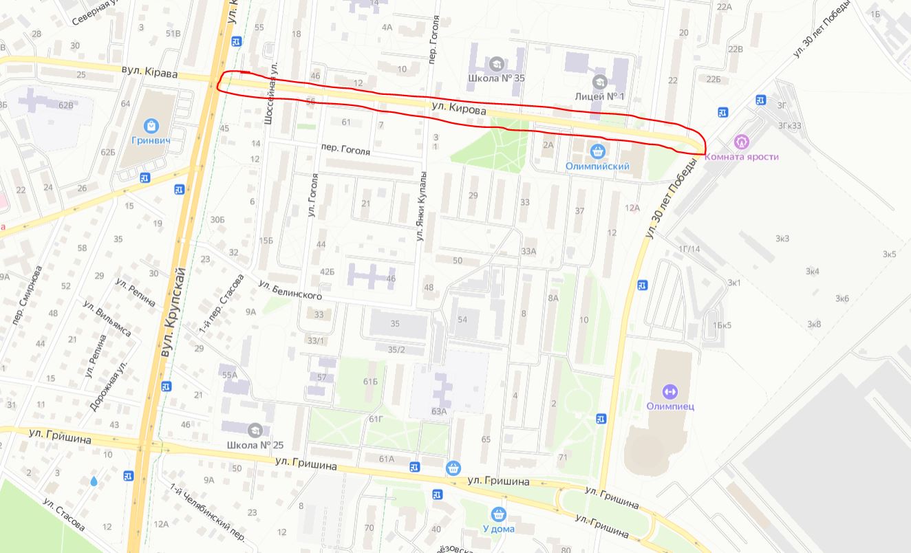 Работы по устройству выравнивающего слоя асфальтобетонного покрытия по ул. Кирова на участке от ул.30 лет Победы до ул. Первомайской будут выполнены в 2024 году. (Ршение Могилевского горисполкома от 16.02.2024 № 4-20)