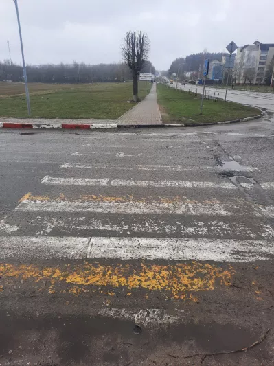 Пересечение данного тротуара заездом к заводу «Амкодор» не является эффективным для велосипедистов ввиду того, что пешеходный переход размещен в стороне от прямой безбарьерной пешеходной дорожки, что будет приводить к фактам нарушение ПДД со стороны велосипедистов, стремящихся ехать по минимальной и прямой траектории.