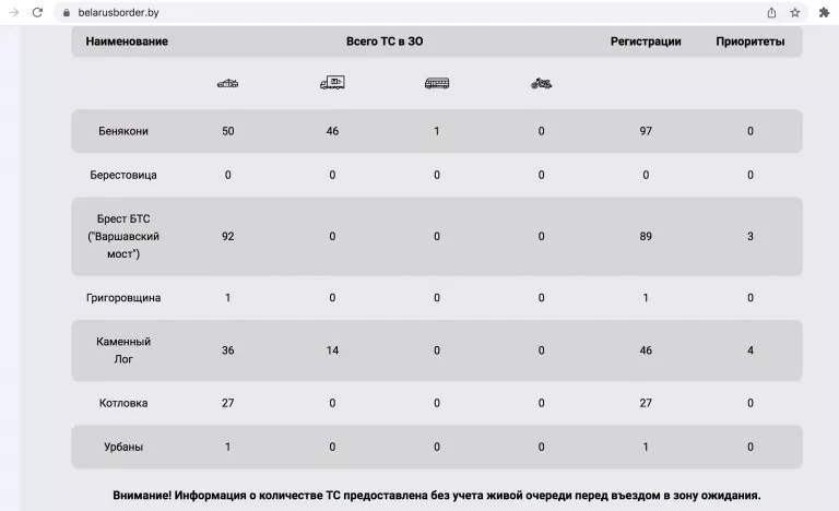 сайт "Государственный пограничный комитет Республики Беларусь" https://gpk.gov.by/situation-at-the-border/punkty-propuska/brest/