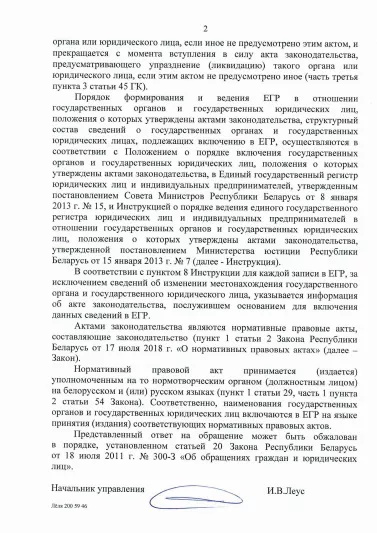 2. Принять иные меры, направленные на добавление в ЕГР наименований всех государственных органов (государственных юридических лиц) на беларуском языке.