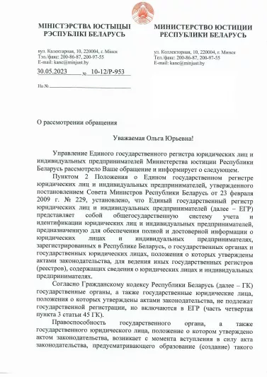 2. Ответ Минюста от 30.05.23 № 10-12/Р-953.