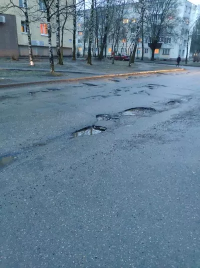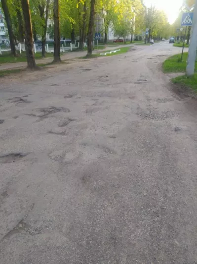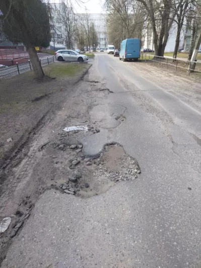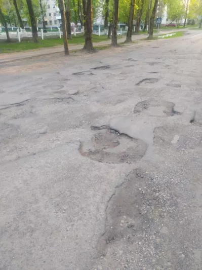 Участок дороги, ограниченный проспектом Черняховского и улицей Чкалова (от дома 26 по пр-ту Черняховского до дома 17 по ул. Чкалова) в городе Витебске и проходящий между гимназией №5 и детским садом №84, находится в непригодном для эксплуатации состоянии.