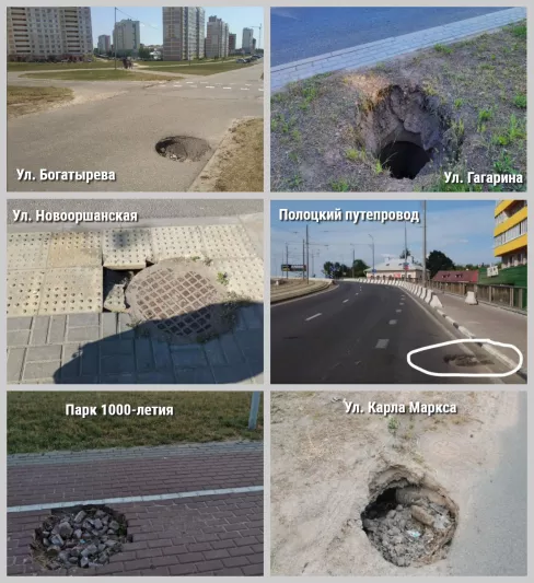 Вместе с тем, следует отметить, что за последнее время горожанами обнаружены новые антирекорды в наличии дефектов улично-дорожной сети указанного типа (провалы грунты, сломанные или отсутствующие крышки люка и т. п.) в городе Витебске.