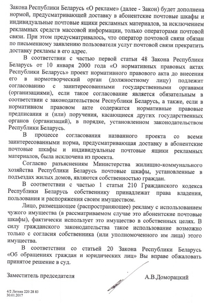 2/3 заданных вопросов проигнорированы. Суть ответа на остальные - почтовый ящик ваша собственность, не нравится реклама - подавайте в суд на рекламодателя сами. А государству, в лице МАРТа, безразлично