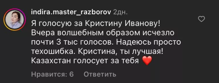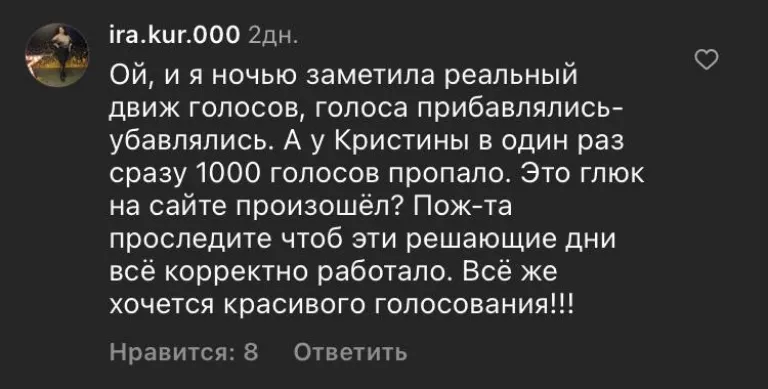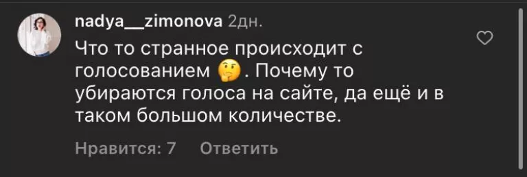 Важным моментом является также третье замечание, связанное с победительницей в номинации "Мисс зрительский симпатий" – Мартой Мирейко. Официальная страница конкурса "Мисс Беларусь 2023" получила множество комментариев от граждан, утверждающих, что у конкурентки Марты, Кристины Ивановой, по необъяснимым причинам пропали несколько тысяч голосов. Мы требуем подробных разъяснений и объяснения данной ситуации со стороны организаторов конкурса.