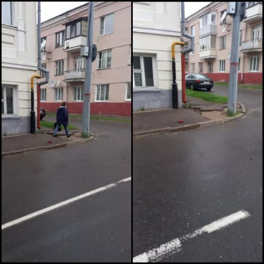 Тротуар на улице Франциска Скорыны города Полоцка разрушен. Благо, дыра в развороченном асфальте находится под фонарным столбом, мы надеемся, что его освещения достаточно, чтобы прохожие видели опасность в темное время суток. Однако Освещение не делает его полностью безопасным. Также на разрешенном участке сложно передвигаться жителям города с детскими колясками и людям с ограниченными физическими возможностями.