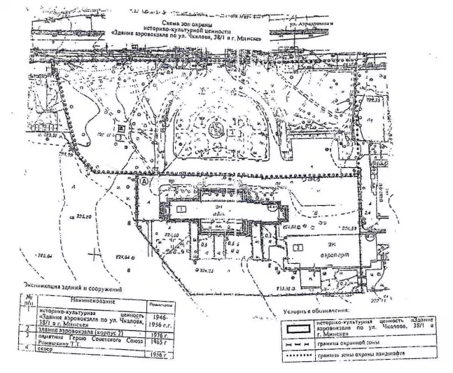Согласно п. 14 Указа Президента Республики Беларусь от 22 сентября 2014 г. № 456 «О реализации инвестиционного проекта «Экспериментальный многофункциональный комплекс «Минск-Мир»» (далее – указ № 456), установлено обязательство заказчика комплекса обеспечить в ходе разработки проектной документации сохранение и обустройство территории историко-культурной ценности «Здание аэровокзала по ул. Чкалова, 38/1 в г. Минске» с учетом требований законодательства об охране историко-культурного наследия Республики Беларусь. И этим законодательством запрещено научно не обоснованное ухудшение условий восприятия историко-культурной ценности.