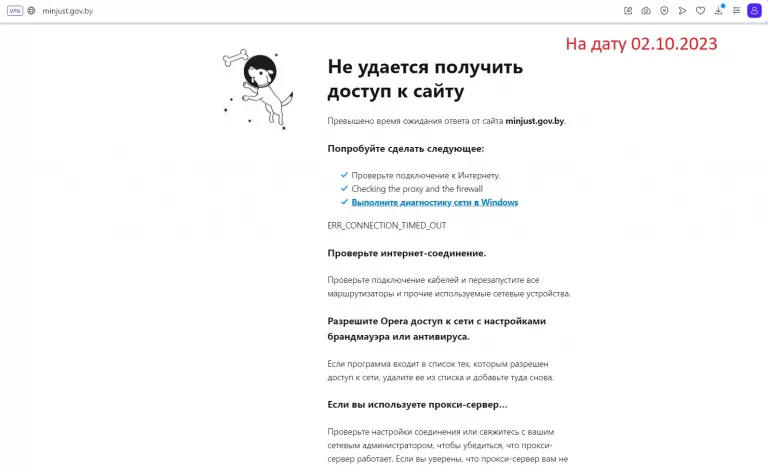 Сайт Министерства юстиции www.minjust.gov.by недоступен из-за границы на дату 02.10.2023 года (прилагается файл "2023.10.02 - скриншот.jpg").