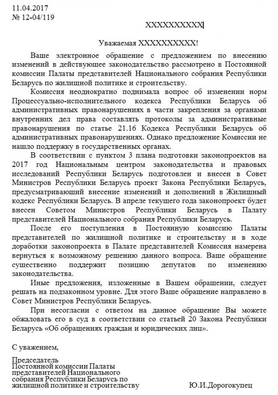 При доработке Жилищного кодекса Палата представителей намерена намерена отстаивать эту позицию, опираясь на данную петицию.