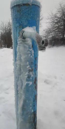 4 января производились ремонтные работы по водоснабжению (естественно в этот день воды не было примерно с 11.00-17.00, потом пошла вода цвета нефти). После включения воды она пошла со всех щелей что были в данной колонке, естественно вечером был мороз и она замёрзла. Таким образом, жители частных домов остались без воды.