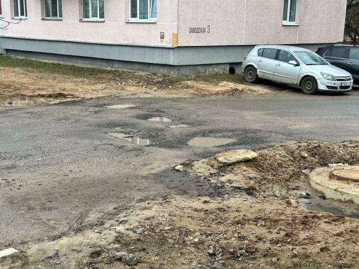 После прокладки труб на участке дороги по улице Заводской (в районе дома 3) города Фаниполь дорога превращена в сплошные препятствия.