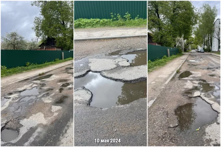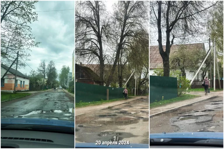 • як следства — на працягу ўсёй вуліцы можна назіраць вялікую колькасць лужын;
