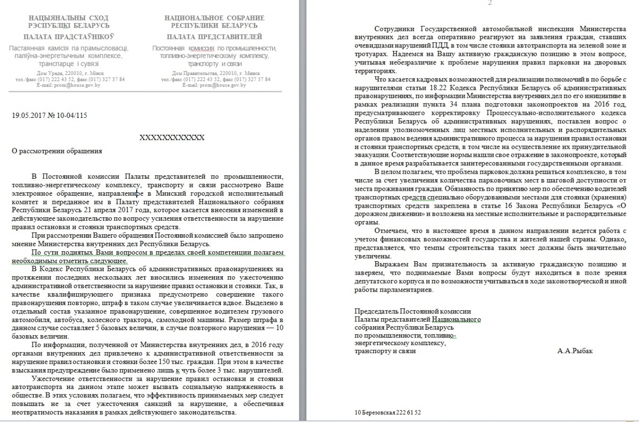 Разрабатывается законопроект, содержащий норму о наделении сотрудников исполкомов правом ведения административного процесса за нарушения правил остановки и стоянки транспортных средств.