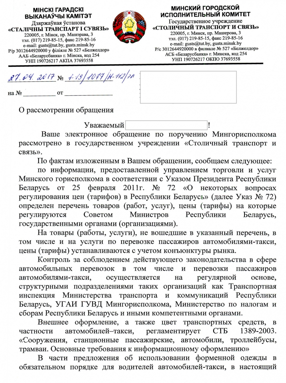 Цены на услуги такси рыночные, не регулируются государством. Требования к оформлению машин предусмотрены СТБ. Обязать таксистов носить униформу невозможно, так это право, а не предусмотренная законодательством обязанность.