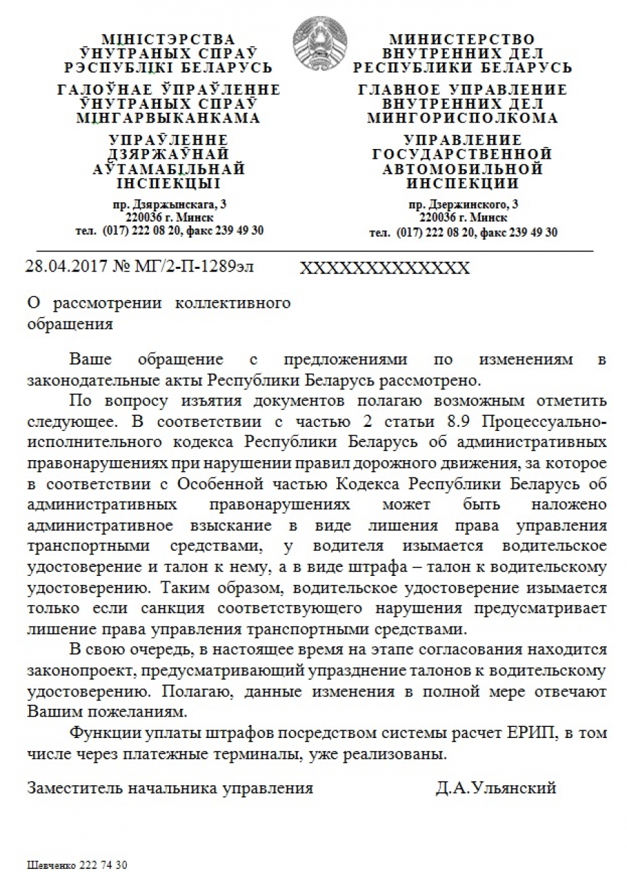 При совершении мелких правонарушений: неправильная парковка, нарушение скоростного режима и других не повлекших за собою тяжкие последствия или повреждения имущества, нет необходимости в изъятии водительского удостоверения или талона к нему для дальнейшего ведения административного процесса в ГАИ, где назначат только суммы штрафа для оплаты. Изъятие аргументируется якобы быстрой оплатой штрафа со стороны нарушителя, но это связано с законопослушностью граждан и наличием денежных средств. Для неплательщиков, доля которых присутствует, есть иные инстанции для взыскания средств, судебные исполнители, суд.