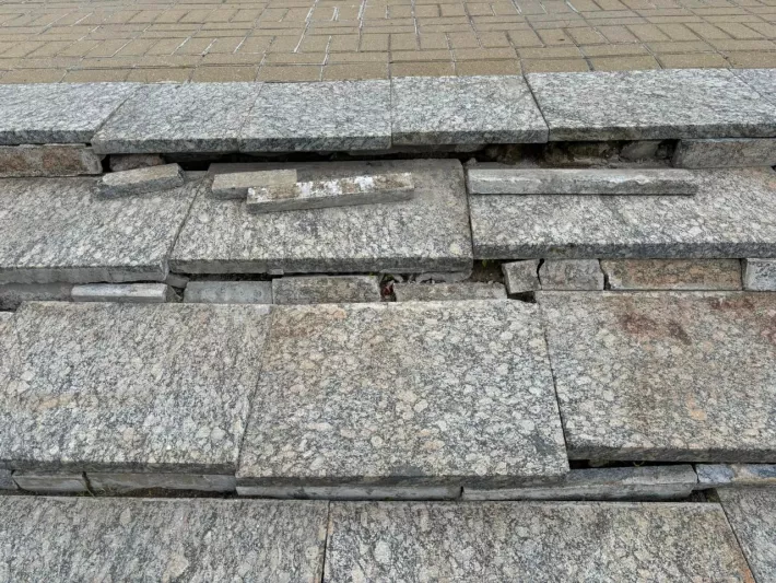 Ужо больш за 4 месяцы месцічы Віцебска назіраюць, як разыходзяцца прыступкі лесвіцы, якая вядзе да Палаца спорту на пр. Будаўнікоў. Тут часта ходзяць людзі, на пляцоўцы ля Палаца часта адбываюцца масавыя мерапрыемствы (кірмашы), а стан лесвіцы выглядае як аварыйны. Ёсць небяспека сходу прыступак і траўмавання пешаходаў. Некаторыя пліткі згубілі сваю цэласнасць.
