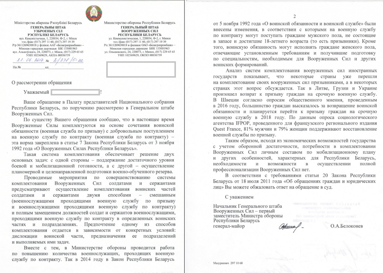 Предлагаем создать в Республике Беларусь профессиональную армию. Она должна состоять из людей, которые хотят отдать всю жизнь своему любимому делу, которые будут ежедневно, на протяжении всей жизни, заниматься только служению родине. Они не должны заниматься бизнесом, но должны получать высокую заработную плату. Остальные же граждане Беларуси должны заниматься работой и учебой, чтобы иметь возможность снабжать армию технологиями и ресурсами. В современном мире знания и навыки являются более эффективным оружием, чем все остальное. История однозначно доказывает, что разделение труда является самой эффективной моделью.