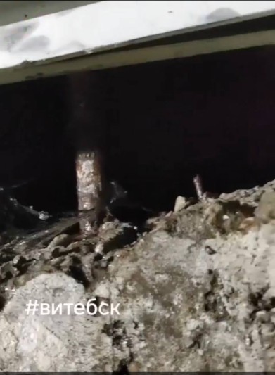 В доме № 39-1 по ул. Правды, в Витебске провели ремонт ливневой канализации 2 года назад. Ремонт проведен некачественно. Были оставлены отверстия в стенах, через которые проводили сварку ливневой канализации.