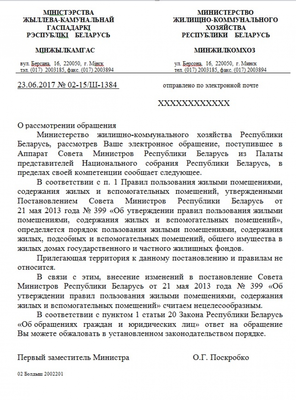 Минжилкомхоз считает реализацию предложения нецелесообразной.