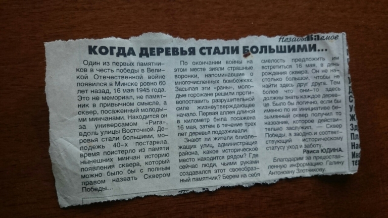 Сквер по ул. Восточной по сути является дендропарком: в нем собраны деревья ценных пород, и по закону они подлежат охране. Сквер является еще и исторической ценностью (выдержки из газетной статьи)