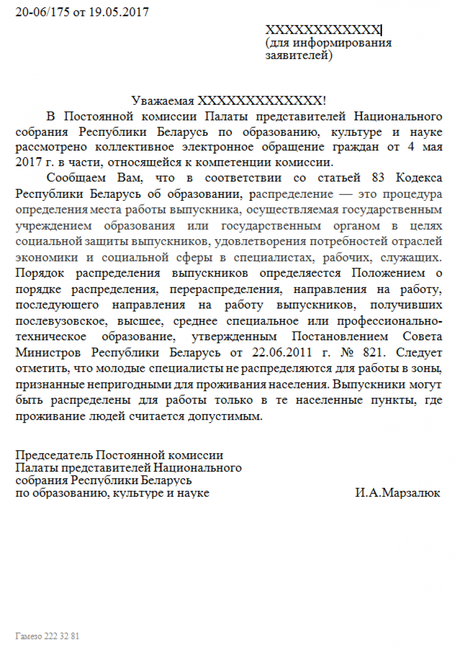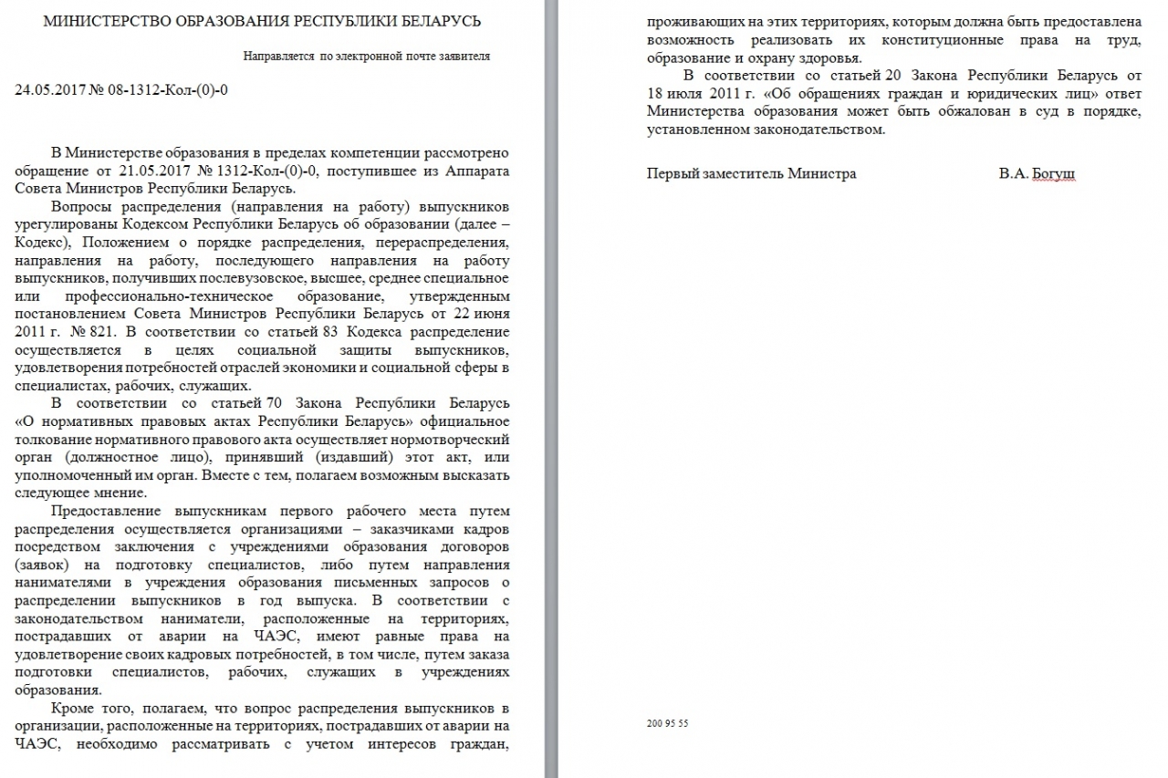 Вопрос распределения выпускников в организации, расположенные на территориях, пострадавших от аварии на ЧАЭС, необходимо рассматривать с учетом интересов граждан, проживающих на этих территориях, которым должна быть предоставлена возможность реализовать их конституционные права на труд, образование и охрану здоровья.