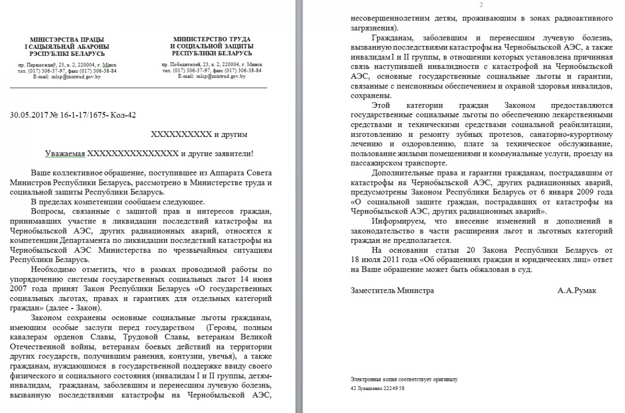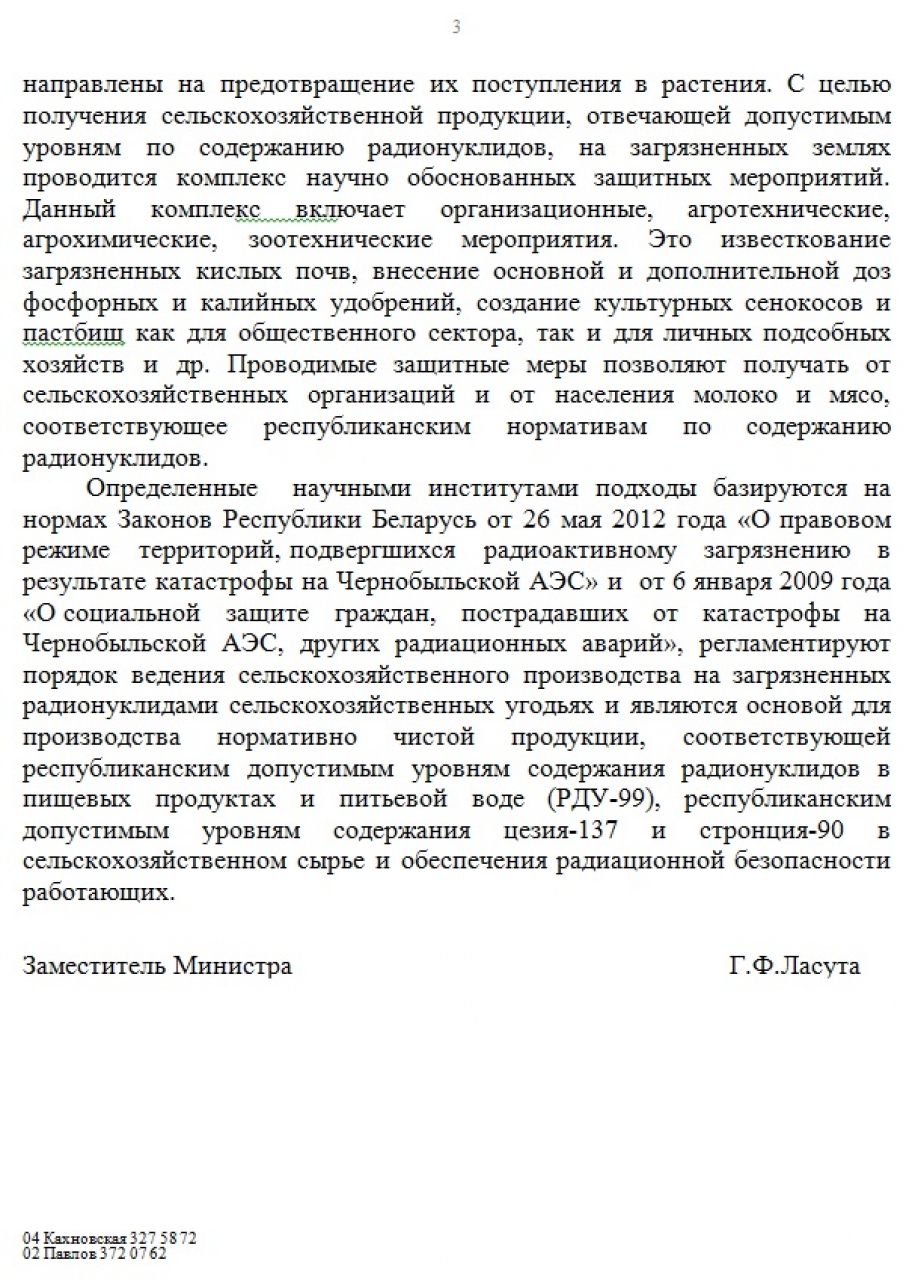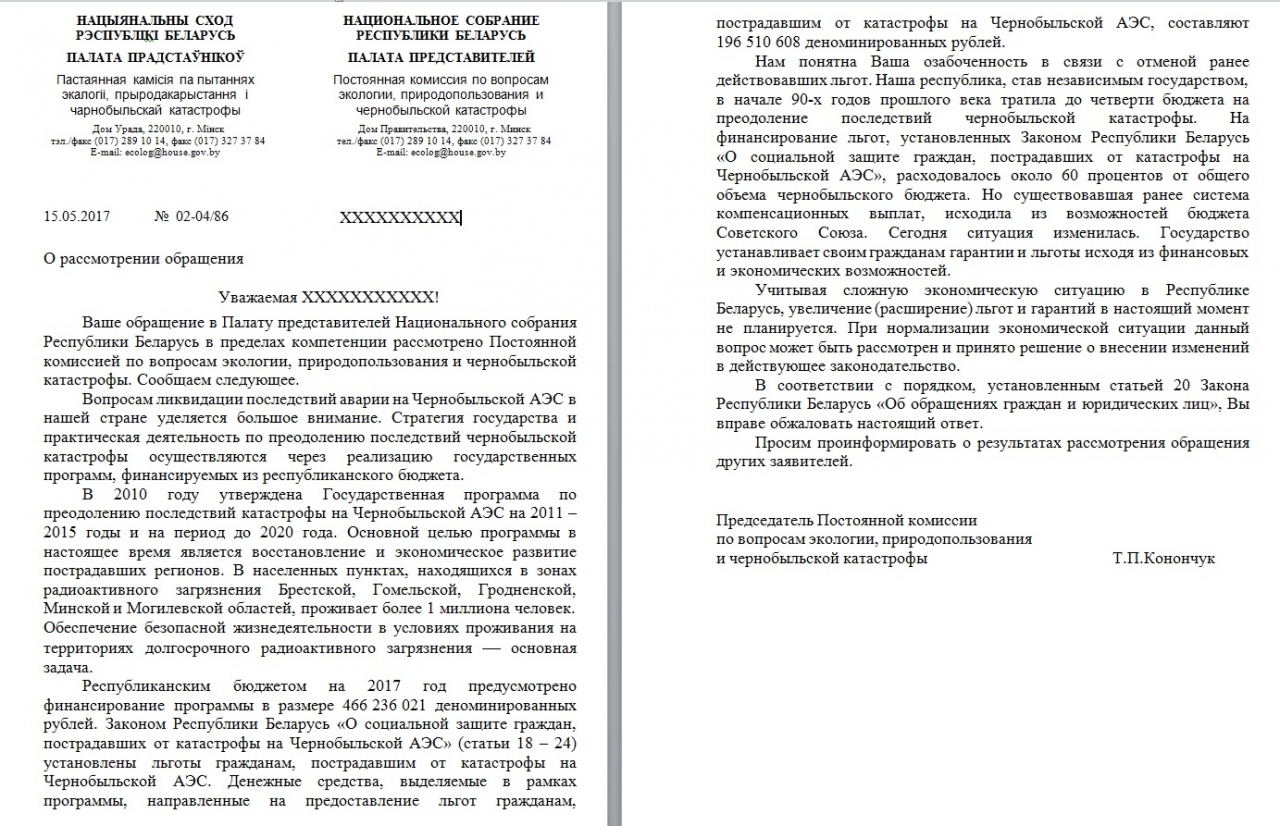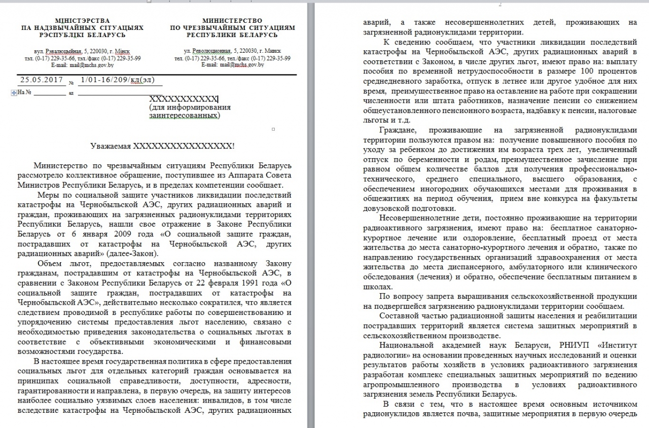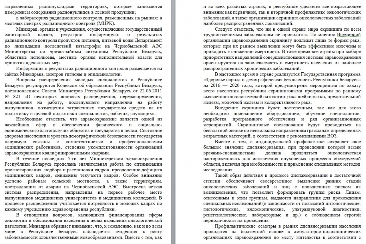 Республика Беларусь является одной из стран, которая больше всего пострадала от аварии на ЧАЭС, но необходимых мер для ликвидации последствий применяется всё меньше и меньше. Вместо того, чтобы реально бороться с последствиями власть забирает льготы у ликвидаторов на ЧАЭС, начинает выращивать сельхоз продукцию на зараженной территории, применяет практику распределения молодых специалистов на зараженные территории.
