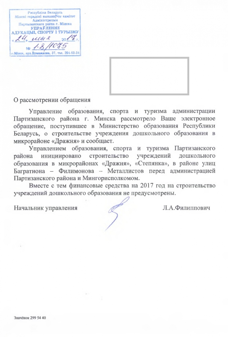 Управление образования поддержало инициативу и направило ходатайство о строительстве детсада в администрацию района и Мингорисполком.