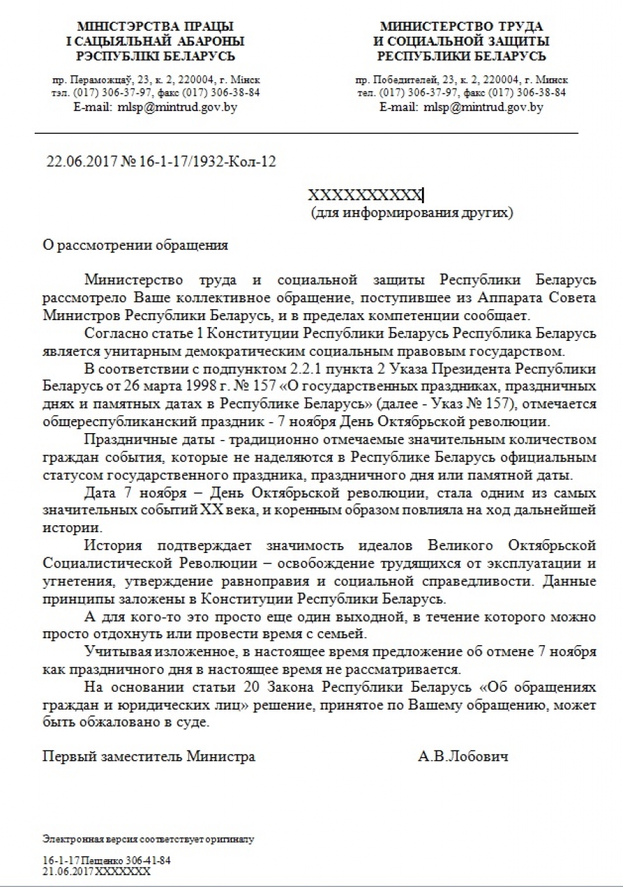 Указом Президента 7 ноября объявлено государственным праздником и нерабочим днем. Предлагаем исключить этот пункт из Указа.