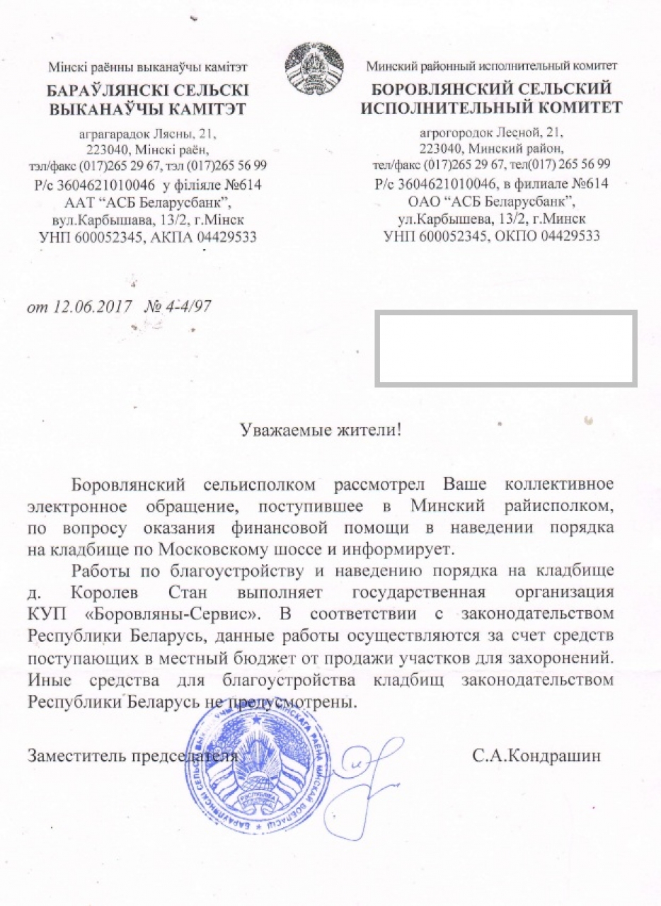 Это кладбище находится в ведении КУП "Боровляны-Сервис".