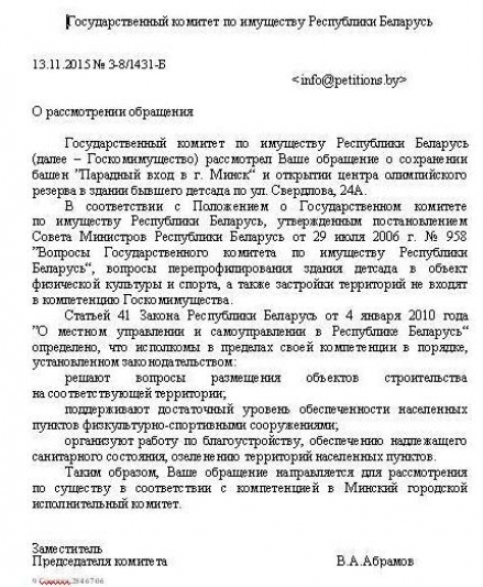 ПЕТИЦИЯ ЗА СОХРАНЕНИЕ БАШЕН «ПАРАДНЫЙ ВХОД В Г. МИНСК» И ОТКРЫТИЕ ЦЕНТРА ОЛИМПИЙСКОГО РЕЗЕРВА В ЗДАНИИ БЫВШЕГО ДЕТСАДА ПО УЛ. СВЕРДЛОВА 24А