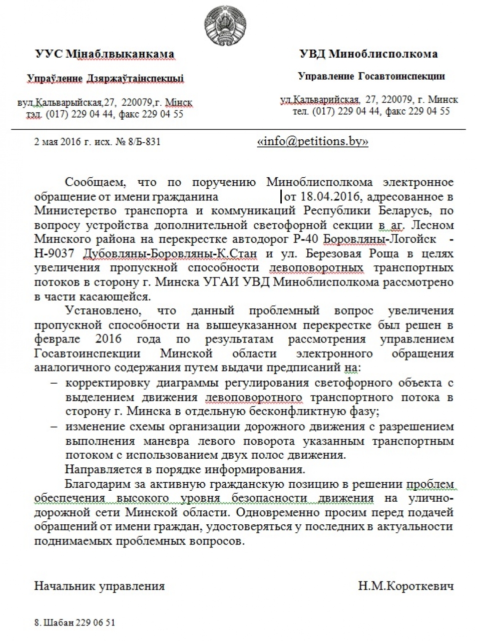 Проблемный вопрос увеличения пропускной способности на вышеуказанном перекрестке был решен в феврале 2016 года.