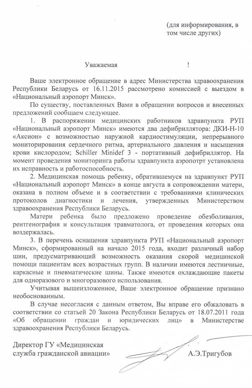 Случилось так, что моя подруга летела из Минска во Франкфурт-на-Майне в конце августа 2015 года. Из-за неправильно настроенной автоматической двери ее сын защемил в двери руку. Дверь закрылась на ребенке, когда он шел вместе с мамой, а навстречу в дверь входил мужчина. Дверь зажала руку и не выпускала. Рука мальчика распухла, образовалась большая гематома. Понятное дело, что следовало охладить поврежденное место, после зафиксировать руку. Я уже не говорю о снимке и более детальном обследовании. Никаких материалов для охлаждения в медпункте не было, а также нечем было зафиксировать руку. Был в наличии только бинт и йод.