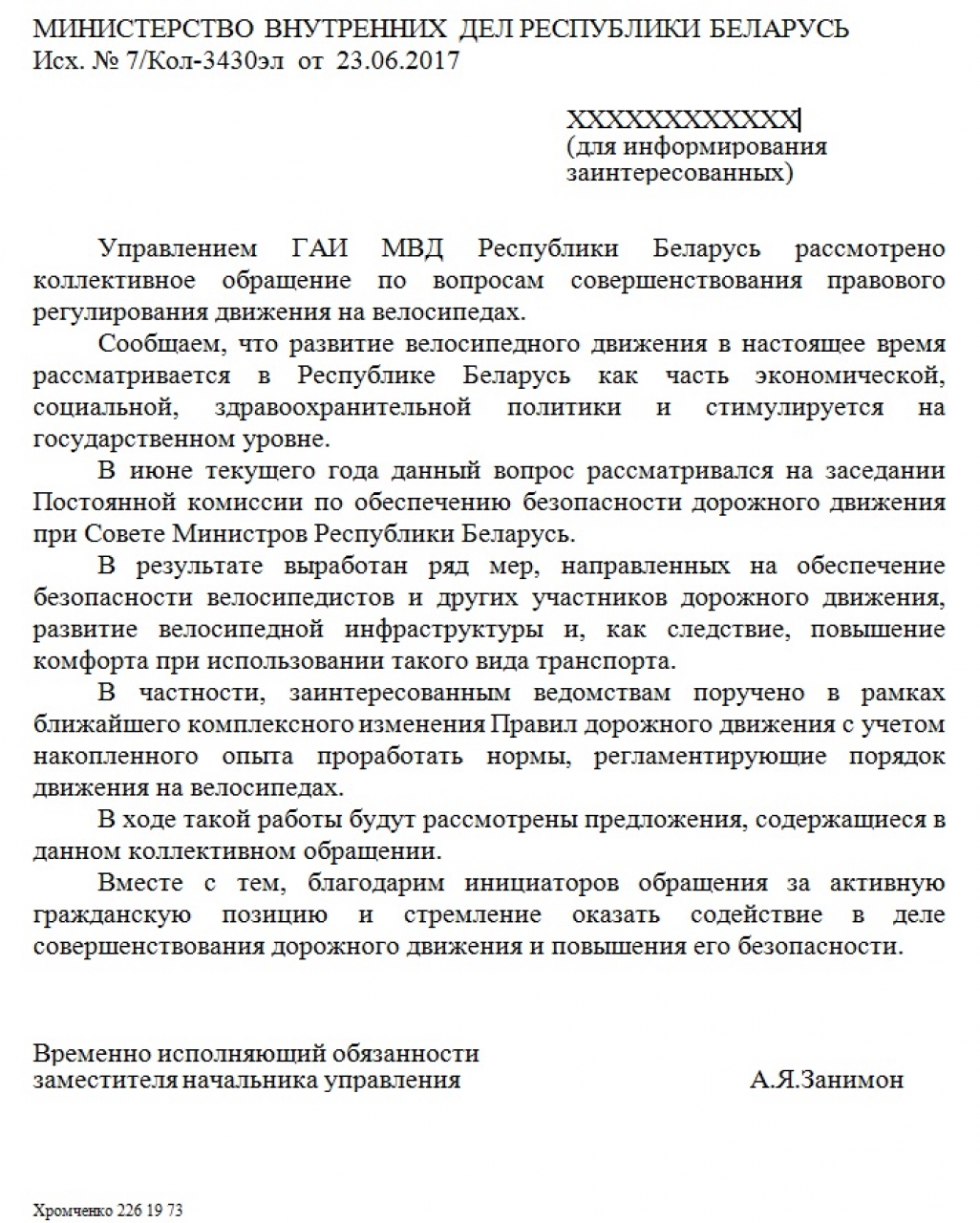 В целях информированности, чтобы люди лучше соблюдали правила стоит в тех местах где пролегает велосипедная дорожка, а рядом пешеходная дорожка (тротуар, переход) прямо на дорожках наносить надписи "Рух пешаходаў забаронены" и "Рух веласіпедыстаў забаронены" соответственно, так как текущие фигуры велосипедиста и пешехода возможно не всем однозначно понятны.