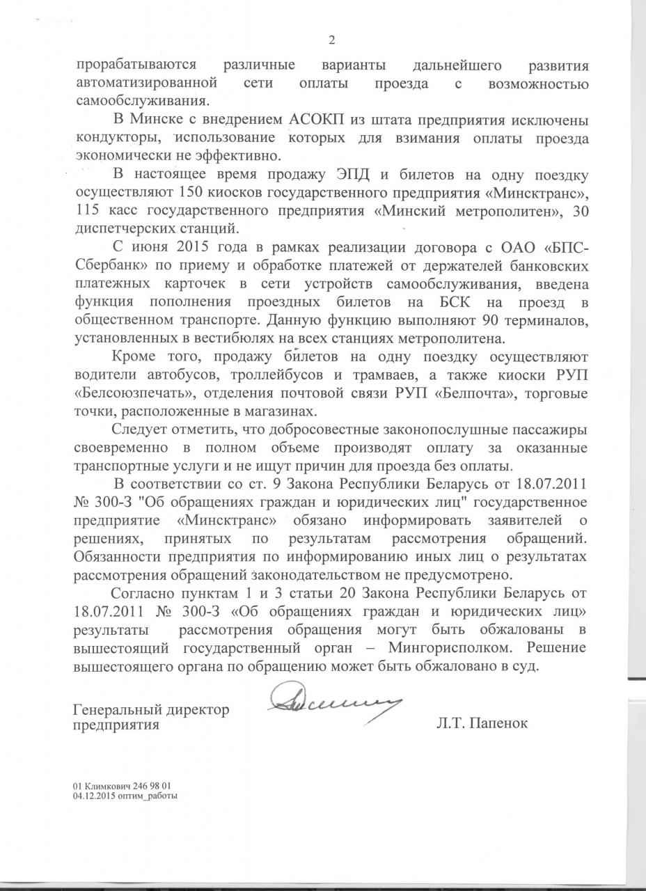 К тому же, я уверен, что отсутствие проездных в киосках Белсоюзпечать и отсутствие кондукторов у гостей города вызывает полное недоумение и затруднения при оплате проезда. Реализация моего предложения позволит избежать таких сложностей и поспособствует более полному исполнению гражданами обязанностей по оплате проезда.