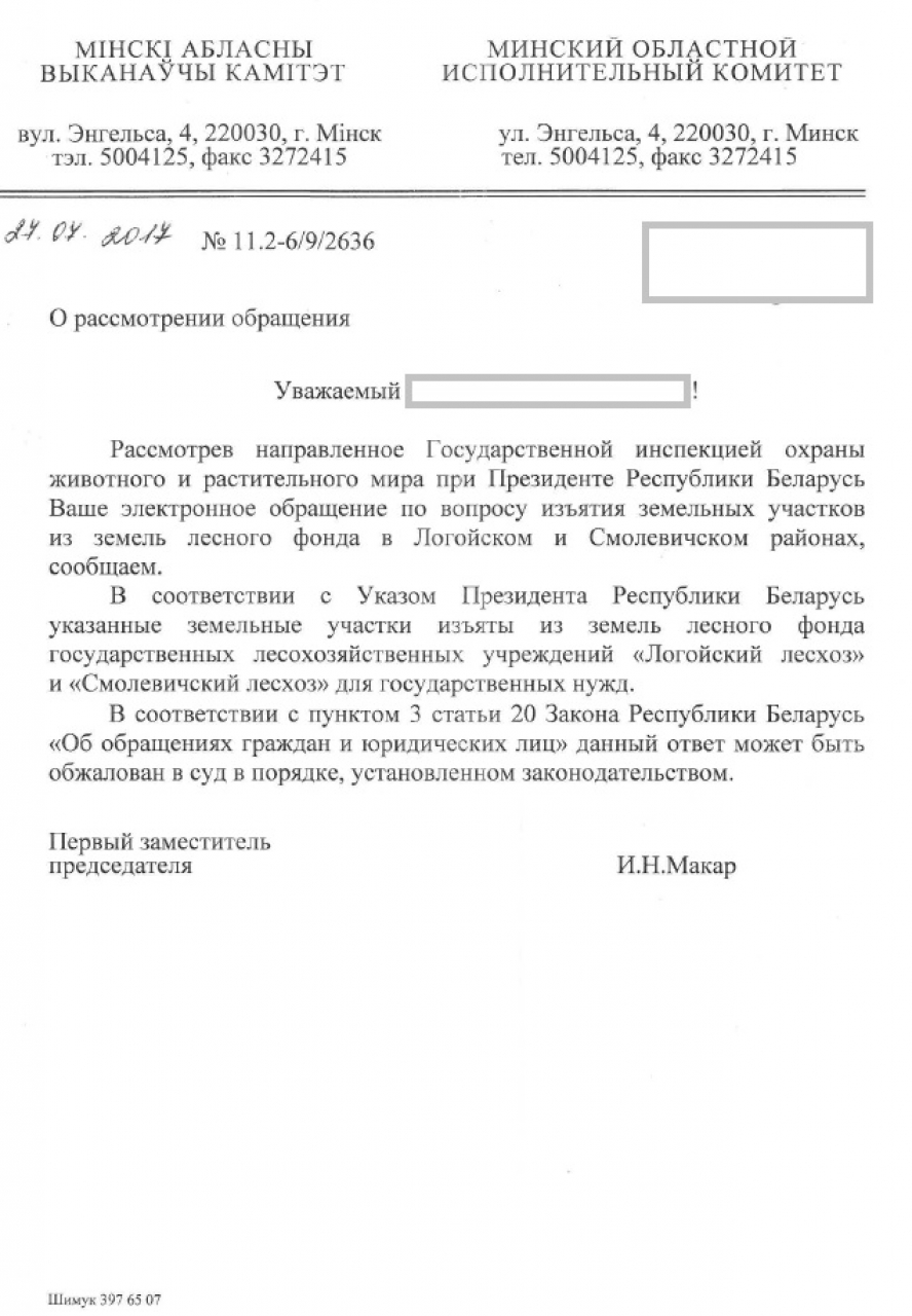 2. Выделение земельных участков лесного фонда производилось негласно без обсуждения с гражданами, проживающими на прилегающей к передаваемому участку лесного фонда территории, что противоречит Ст. 45 Лесного Кодекса РБ.