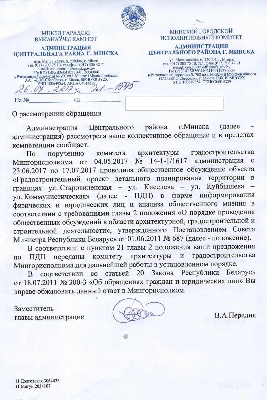 Предложения переданы в Мингорисполком для дальнейшей работы.