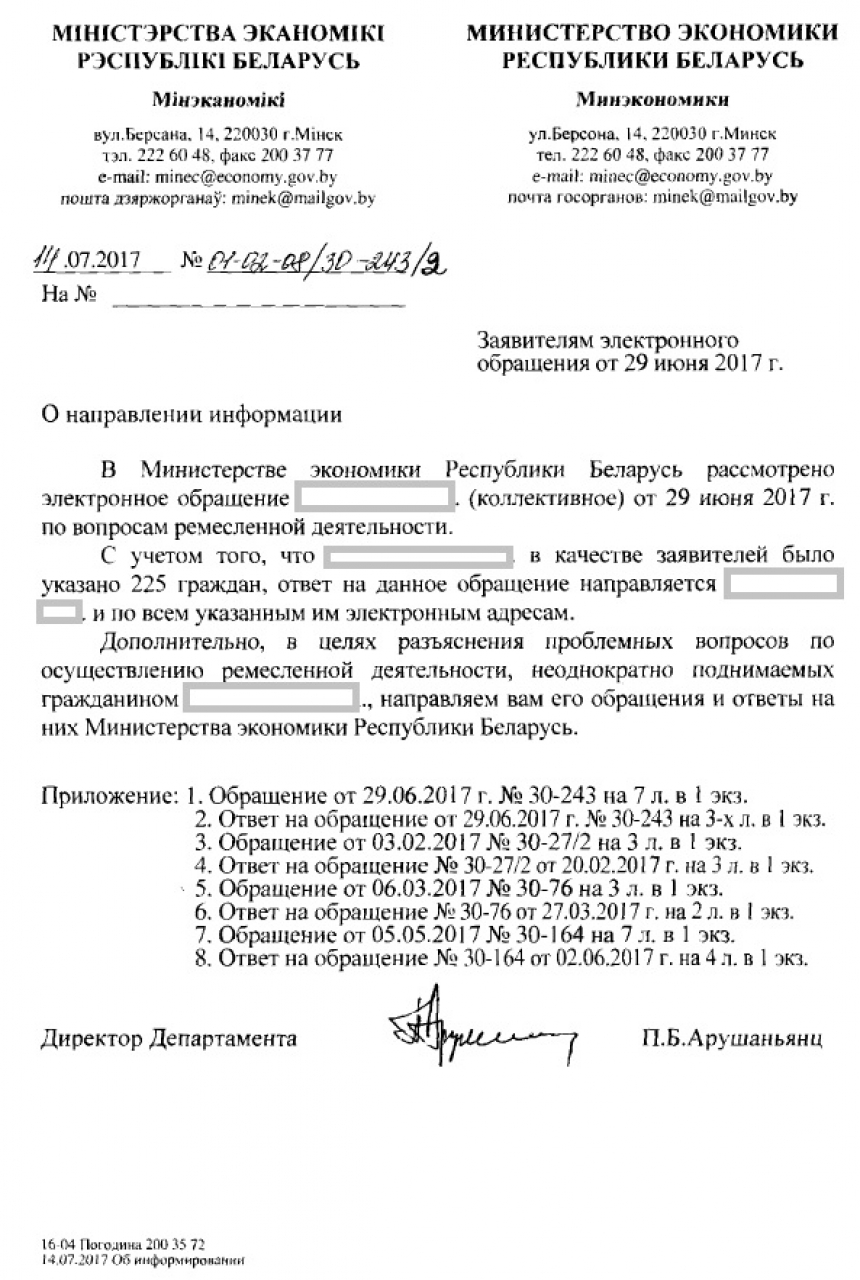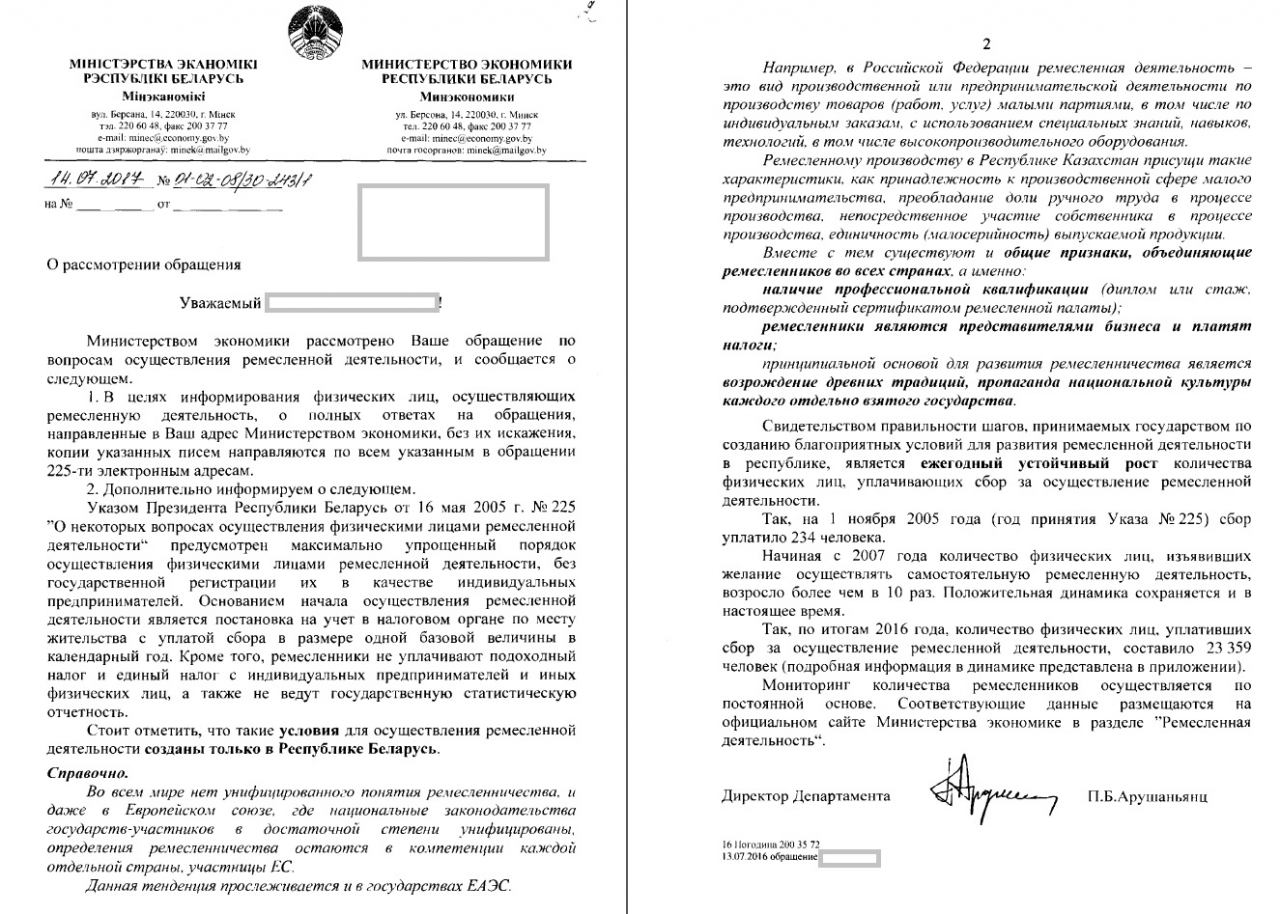 Из личных встреч и ответов на обращения стало ясно, что представители отдела ремесленников при Министерстве экономики не разбираются в видах творчества, плохо ориентируются в вопросе, кто такие ремесленники вообще, и какие у них потребности и проблемы, не заинтересованы что-либо менять/улучшать, реагировать на ситуацию на рынке ремесла. Не проводилось никаких опросов и иследований на эту тему. Предоставляемая нами статистика по ремесленникам игнорируется. Но при этом правки в указ делаются. На основании каких данных?