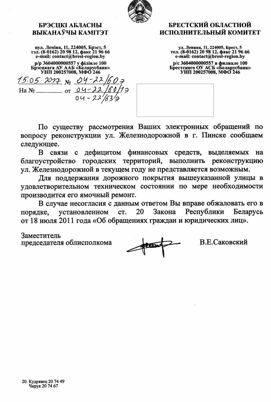 15 мая 2017 мною получен ответ на электронное обращение (копия прилагается).