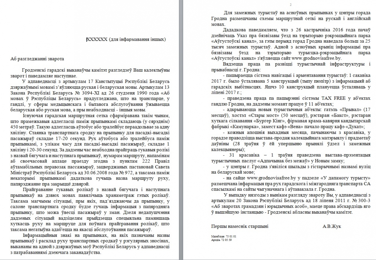 Прапануем у горадзе Гродна аб'яўляць назвы прыпынкаў і паведамленні не толькі на беларускай, але і на англійскай мове.