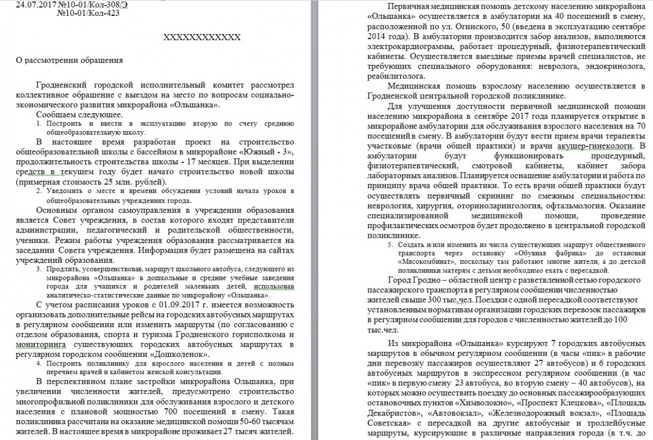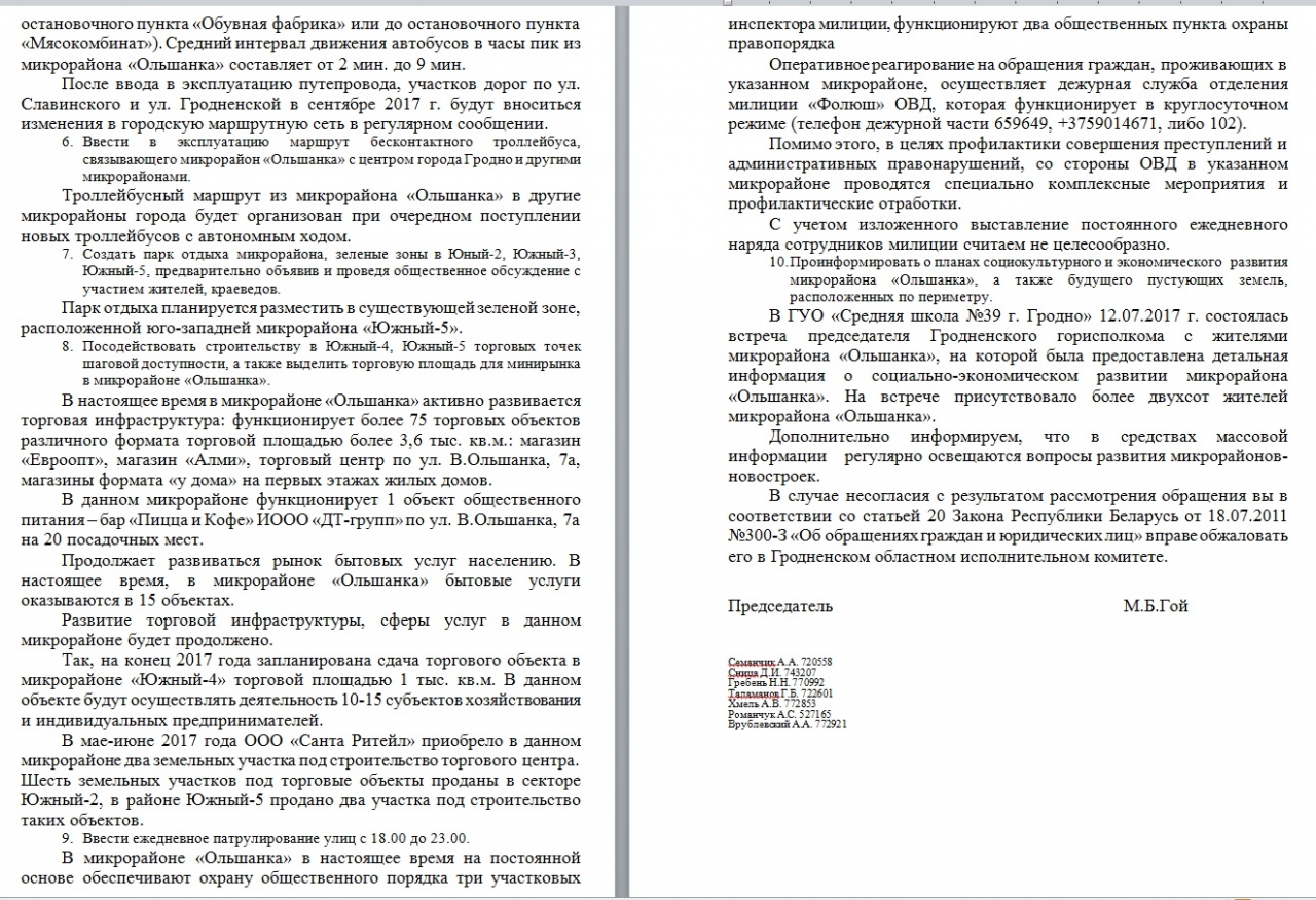 Мы, граждане Республики Беларусь, жители микрорайона «Ольшанка», просим рассмотреть интересующие нас вопросы и посодействовать нашей инициативе, направленной на улучшение качества жизни горожан, и принять следующие меры в нашем микрорайоне: