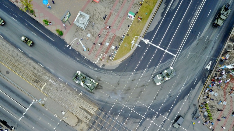 2) Использование тяжелой военной техники приводит к повреждениям дорожного покрытия и разметки на улицах Минска. Нередки случаи ДТП с участием тяжелой военной техники. Власти говорят, что восстановление (ремонт) дорожной инфраструктуры не так уж и дорого обходится бюджету города.