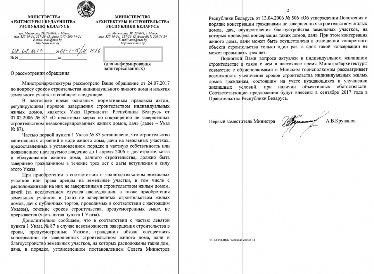 В связи с тяжелым финансовым положением граждан Республики Беларусь просим внести предложение об отмене указа № 520 "О некоторых мерах по совершенствованию отношений в области строительства, изъятия и предоставления земельных участков".