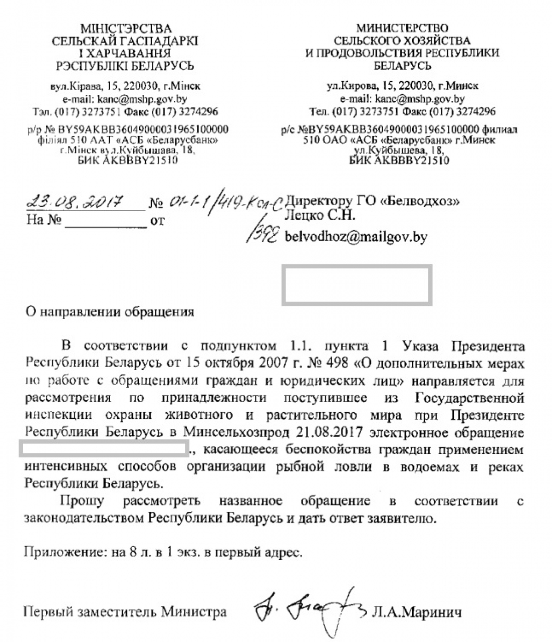 8. Предлагаем оглашать, с выкладыванием сканированных документов в общедоступную сеть интернет, освоения средств, полученных белорусским обществом охоты и рыбалки с взносов рыболовов любителей, сколько членов в обществе, сколько средств и на что израсходованы, так же при освоении средств учитывать интересы всех групп рыболовов и охотников.
