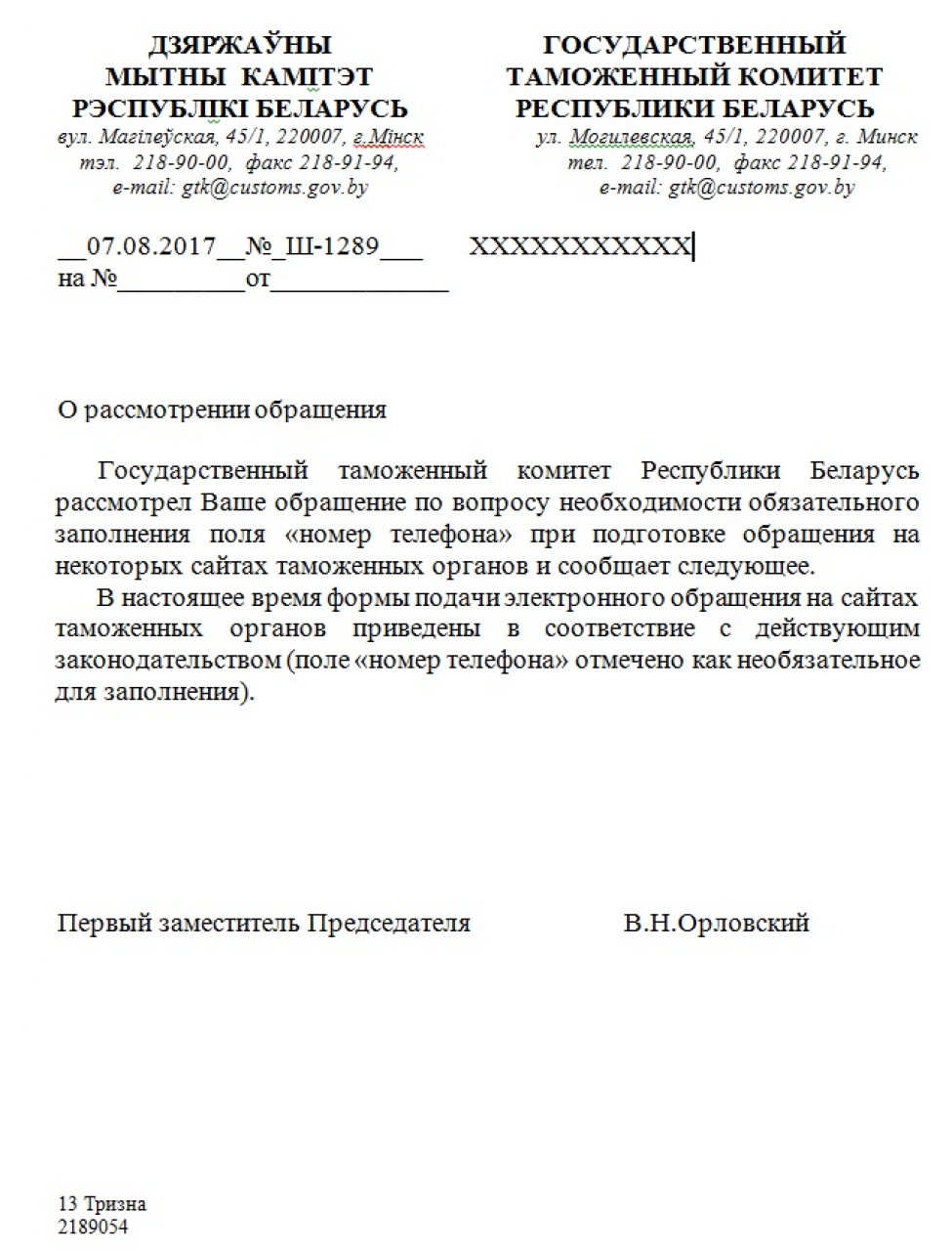 При подаче электронного обращения на сайте Государственного таможенного комитета http://www.customs.gov.by/ru/el-obr-ru/ обязательное поле - "номер телефона", без заполнения которого обращение направить нельзя. Аналогично составлены формы для электронных обращений и некоторых региональных таможен.