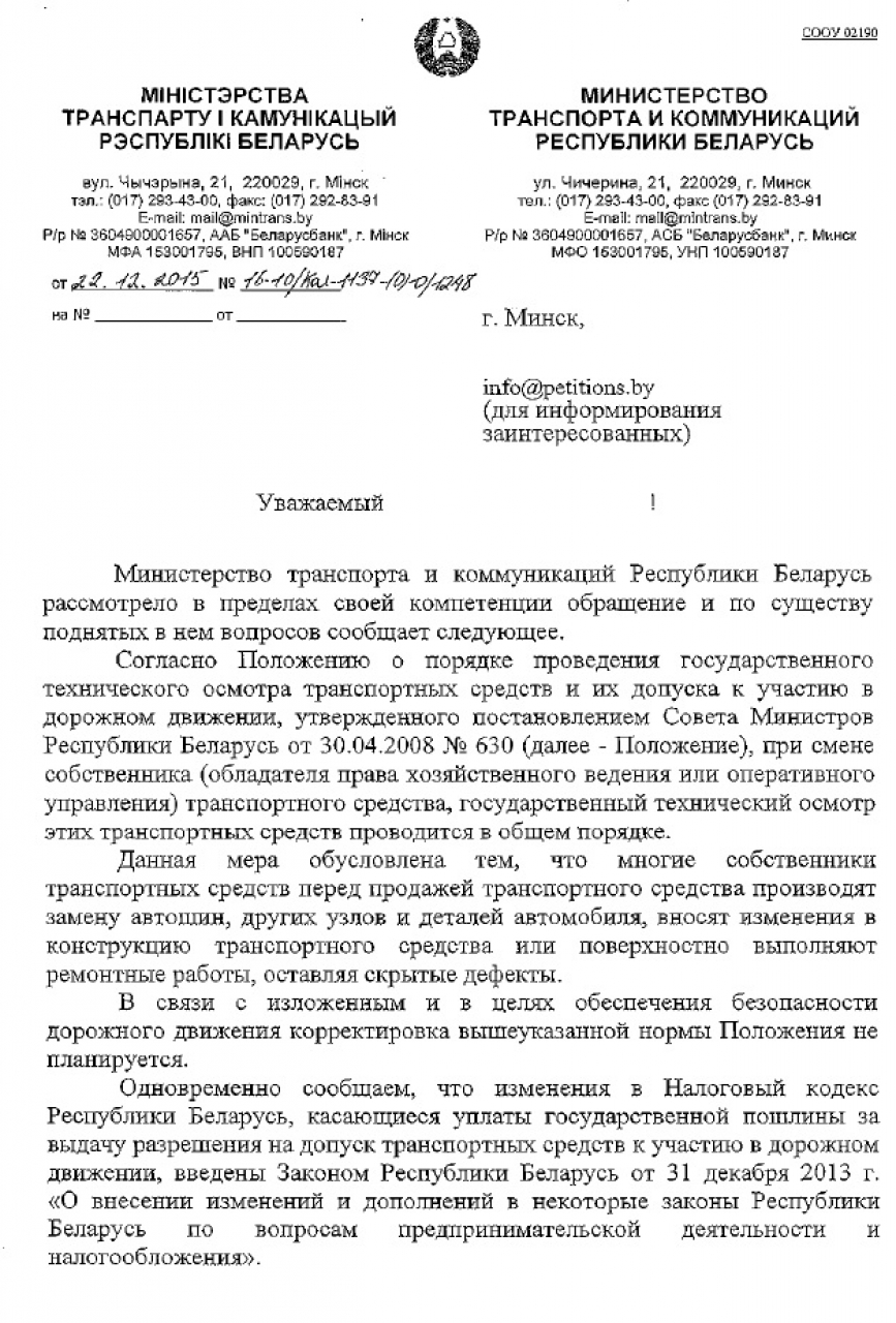 Одной из мер по реализации данного предложения является внесение изменений в Положение о порядке проведения государственного технического осмотра транспортных средств и их допуска к участию в дорожном движении и связанные нормативные акты, предусматривающих возможность не проходить повторно ГТО а также не проводить повторную оплату пошлины за выдачу разрешения на допуск транспортного средства к участию в дорожном движении при изменении собственника транспортного средства (для физических лиц).