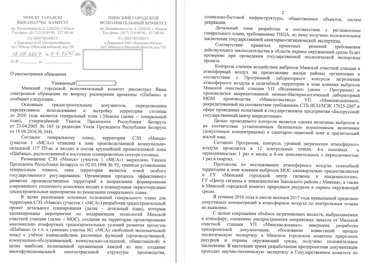 Просим запретить Администрации Заводского района г. Минска реализацию проекта расширения промзоны Шабаны